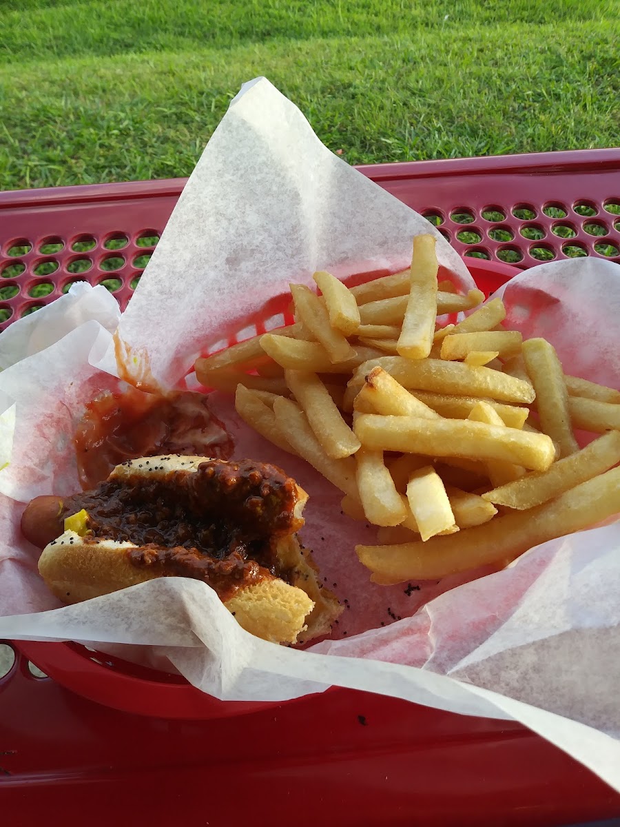 The establishment keeps things simple, making it a dependable lunch stop for locals and travelers who want their hot dogs done right without the distractions of a full-service restaurant. Peak visit times are likely midday or early afternoon, when you can snag a table outside and enjoy your meal overlooking the small lake nearby.